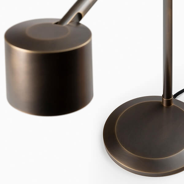 80 Degrees of swing, 350 degrees of rotation and 30 degrees of articulation provides ample opportunity to set just the right light for any task or mood. The hand-patinated finish enhances the natural qualities of the material, bringing out its inherent beauty and strength.