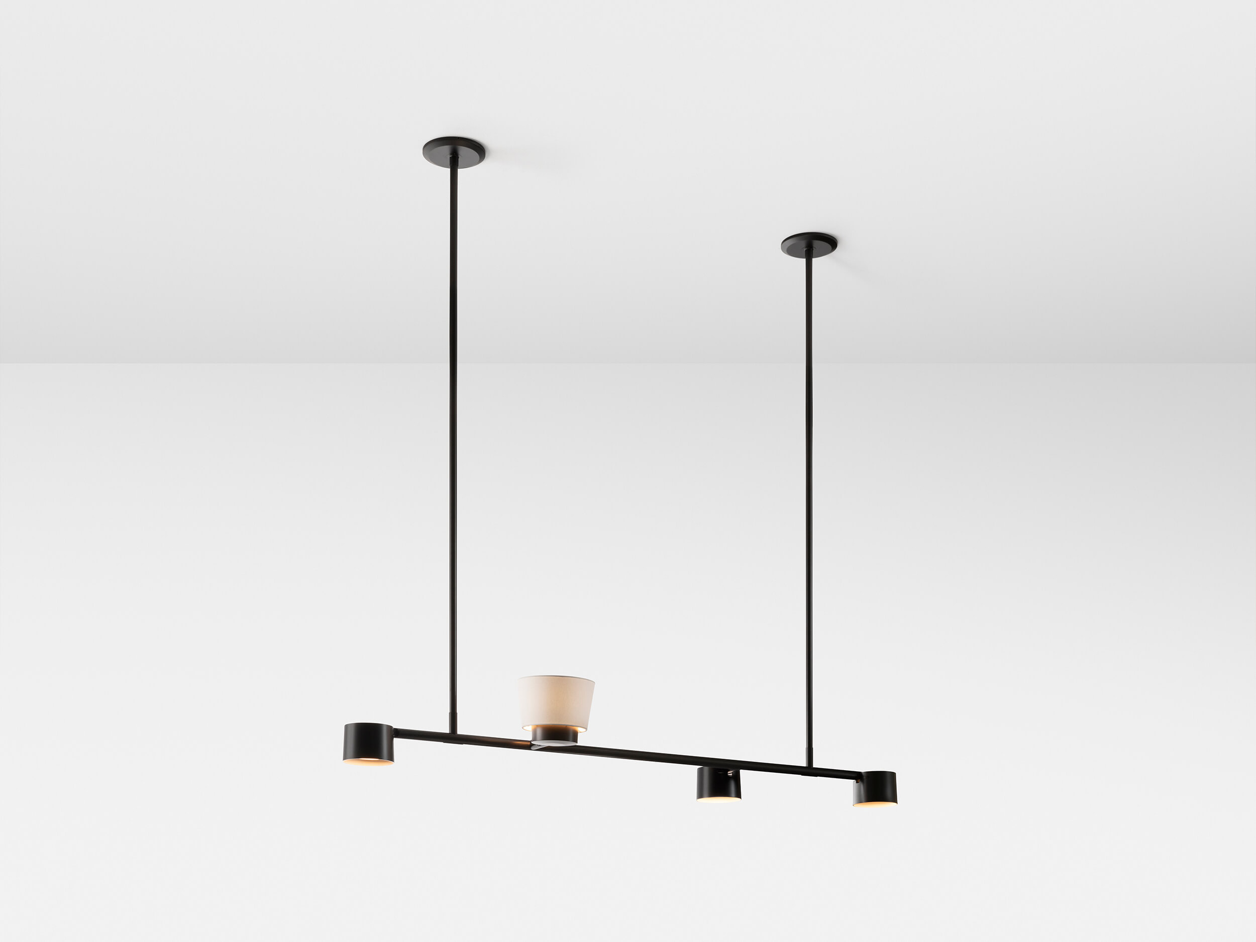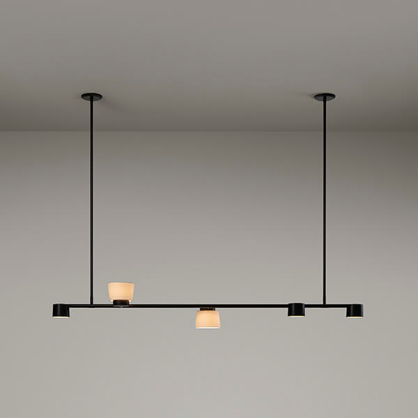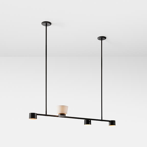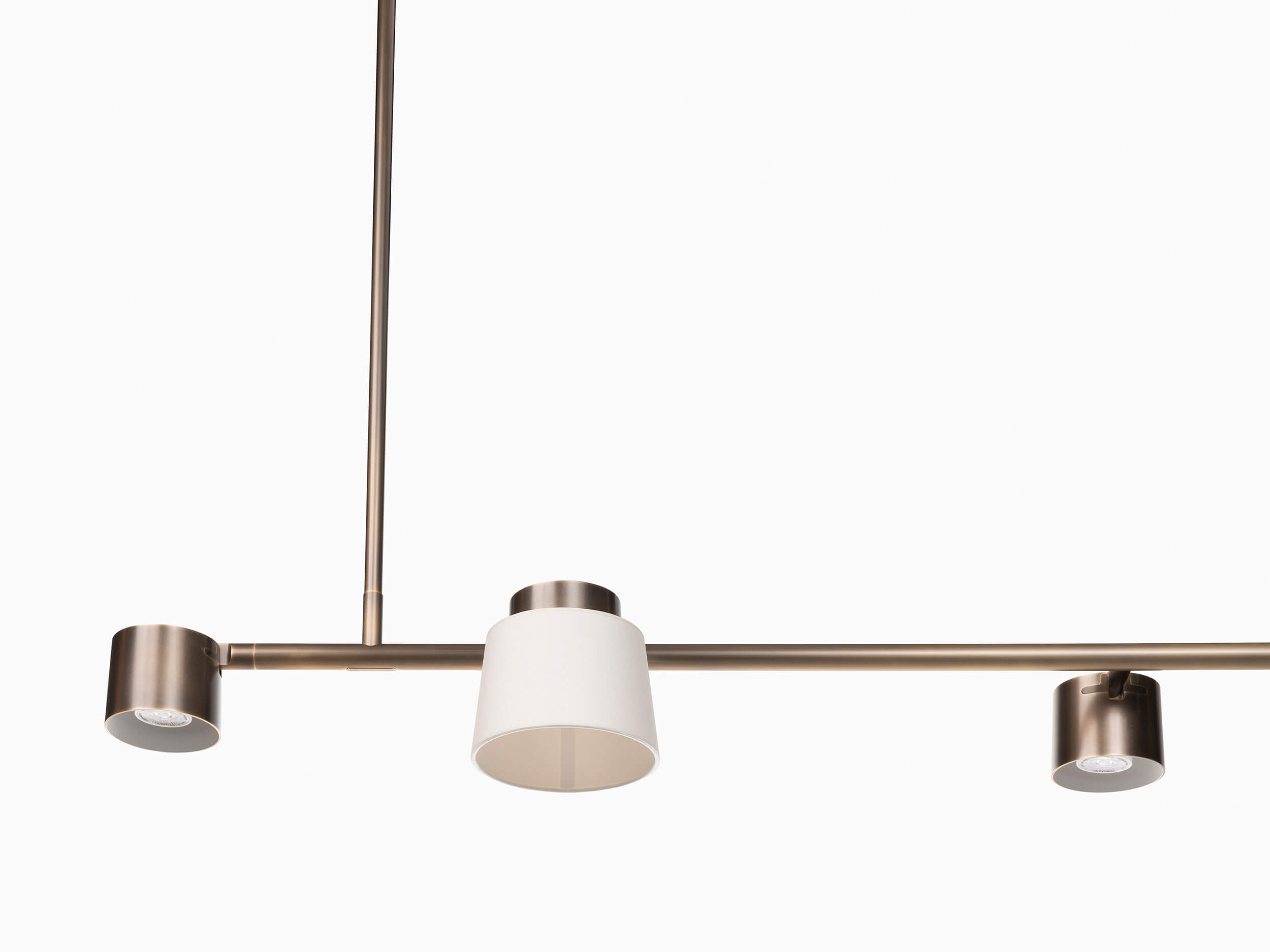 Playful configurations of articulating shades in both metal and paper come together in this versatile hanging light. Together, the refined shapes and forms work harmoniously to create an elevated and elegant piece.