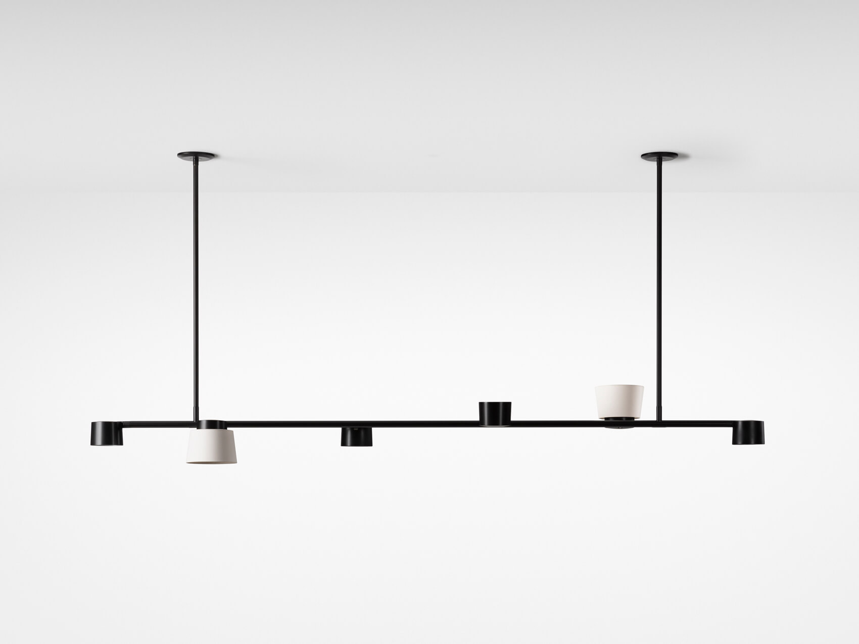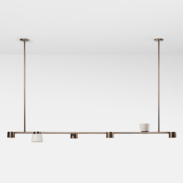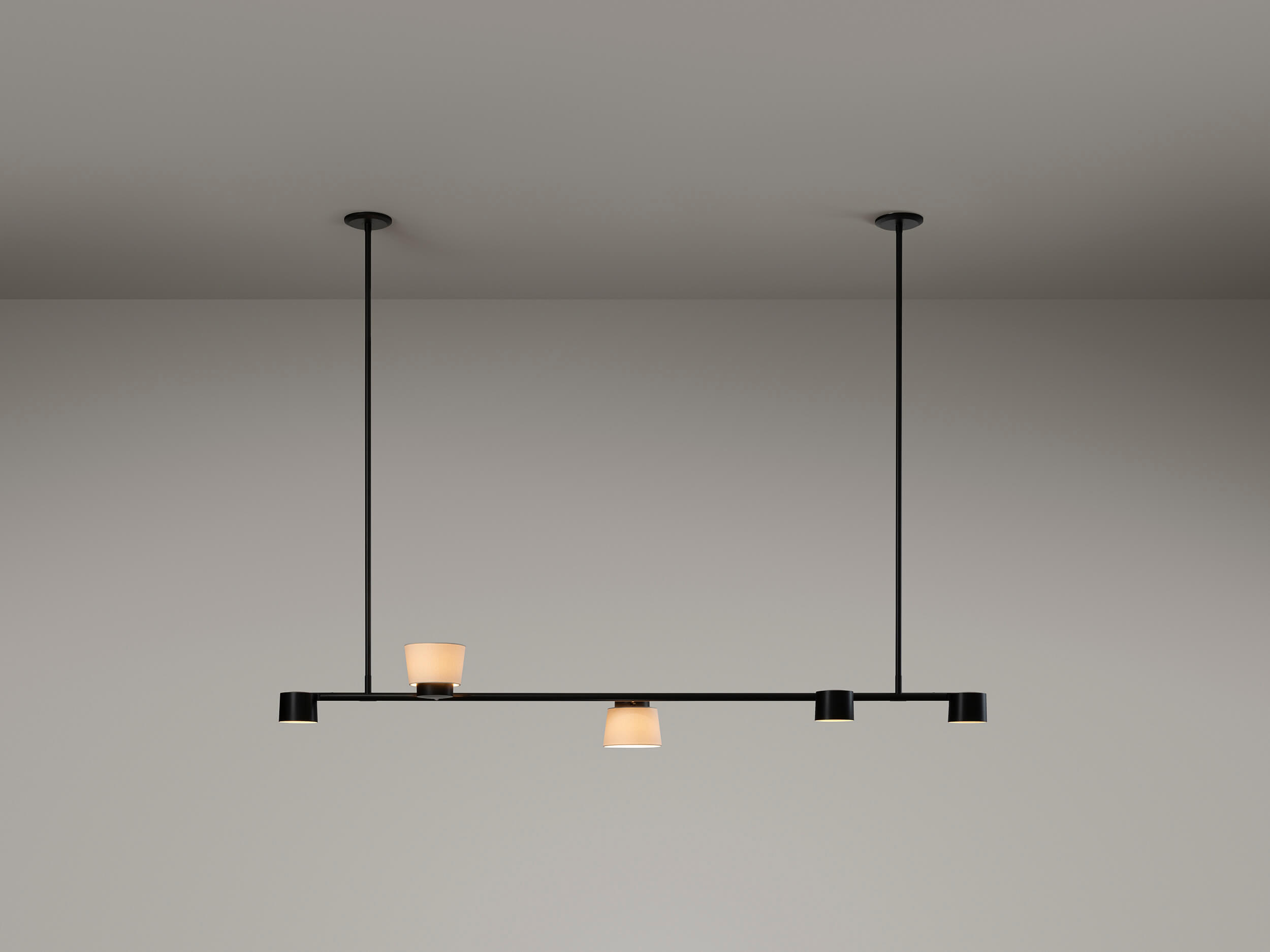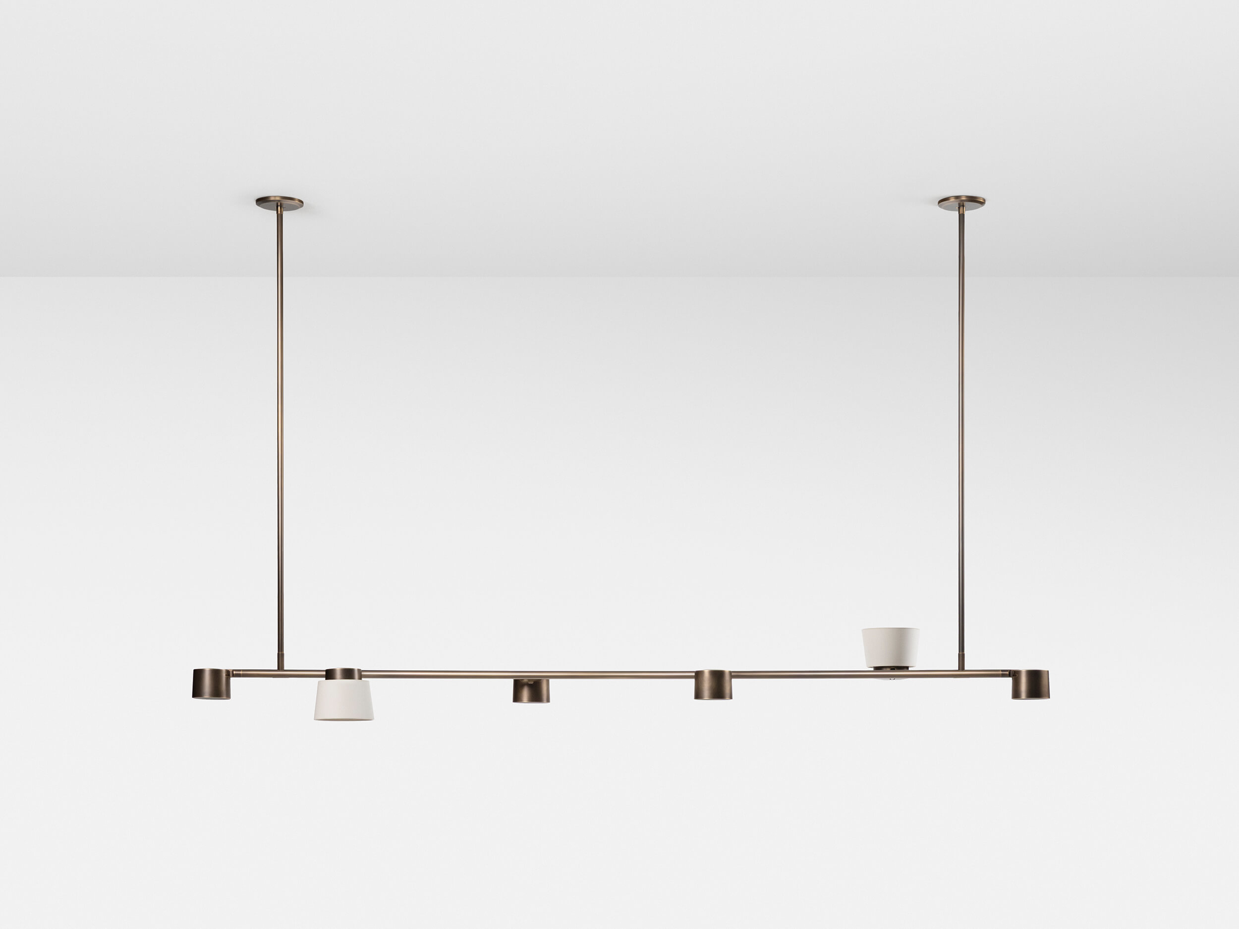 Playful configurations of articulating shades in both metal and paper come together in this versatile hanging light. Together, the refined shapes and forms work harmoniously to create an elevated and elegant piece.