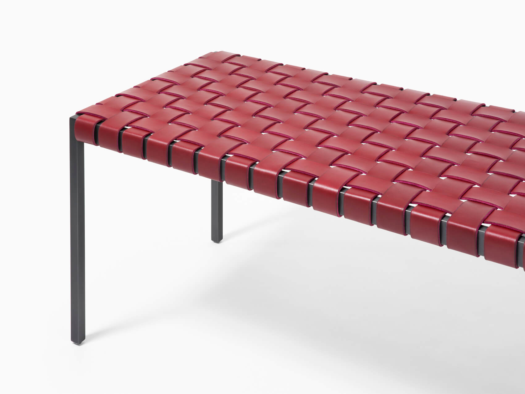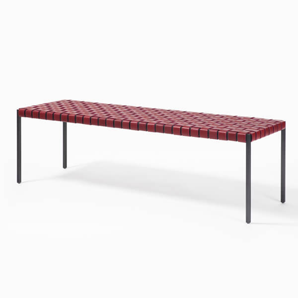 A seamless, solid steel or stainless steel frame supports a hand-woven English Bridle leather seat.