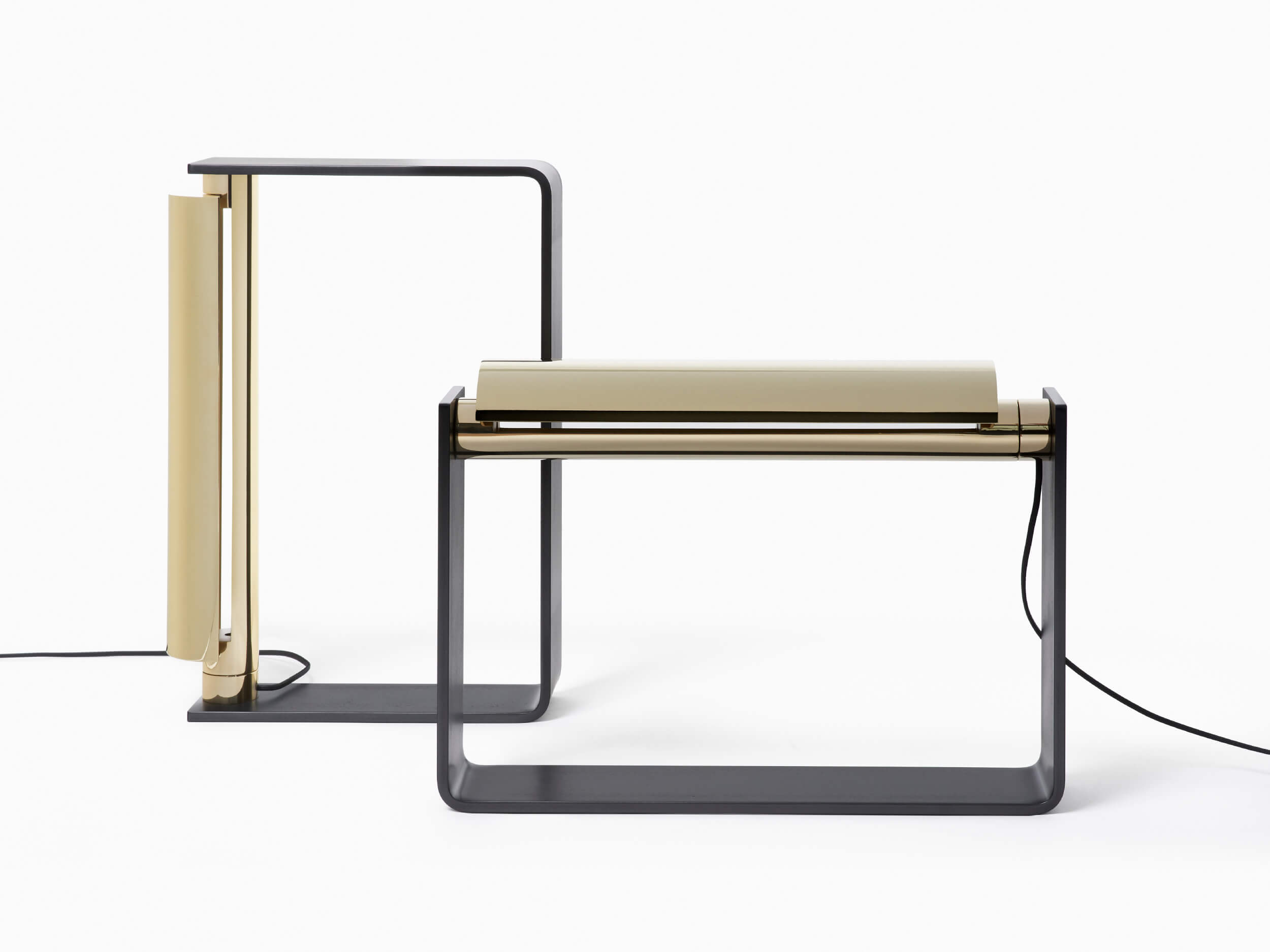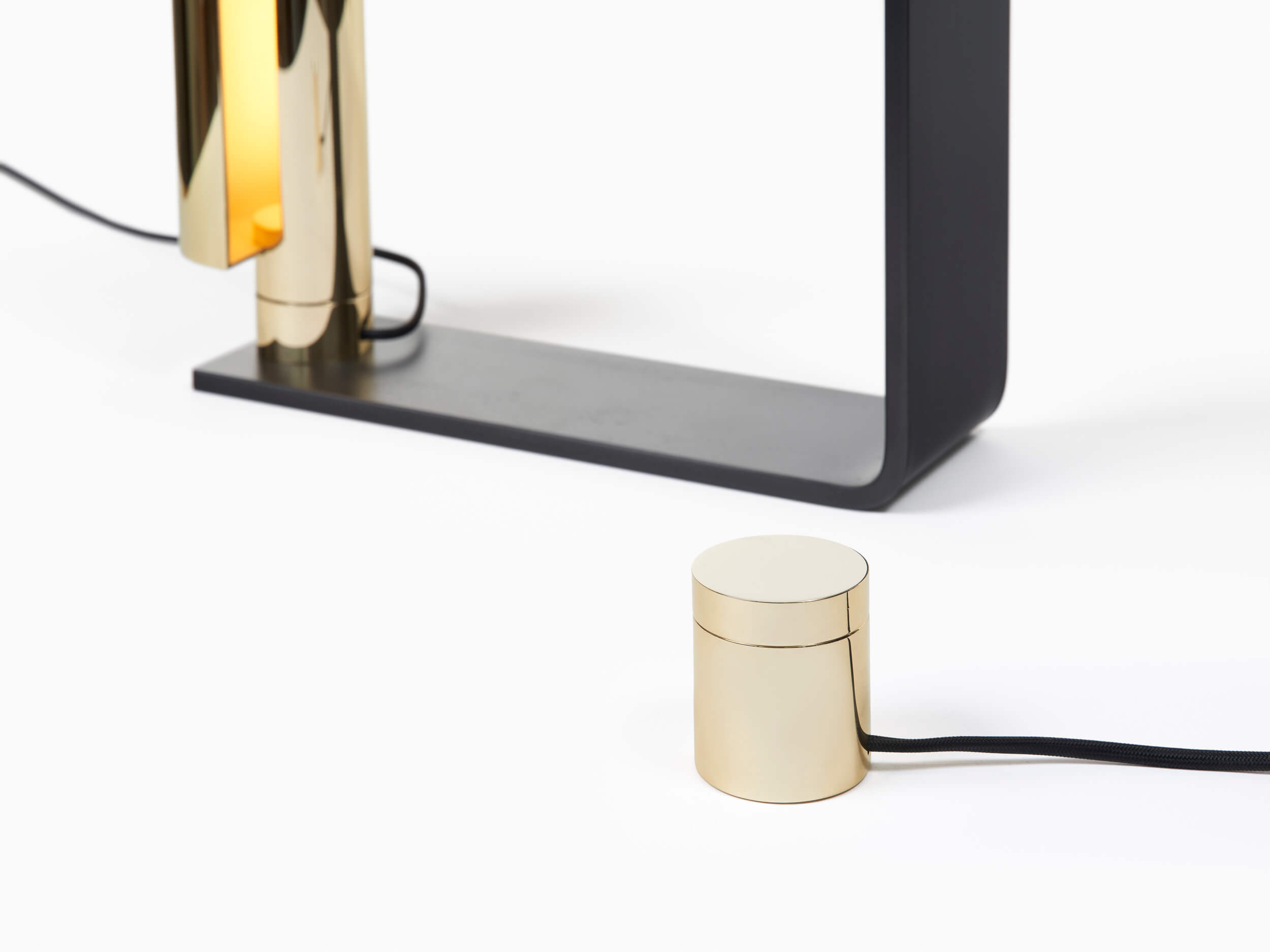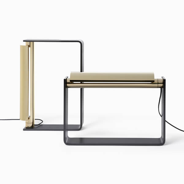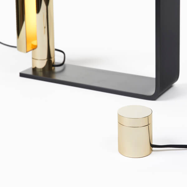 Brass, bronze or nickel shade with dimmer and a black steel base