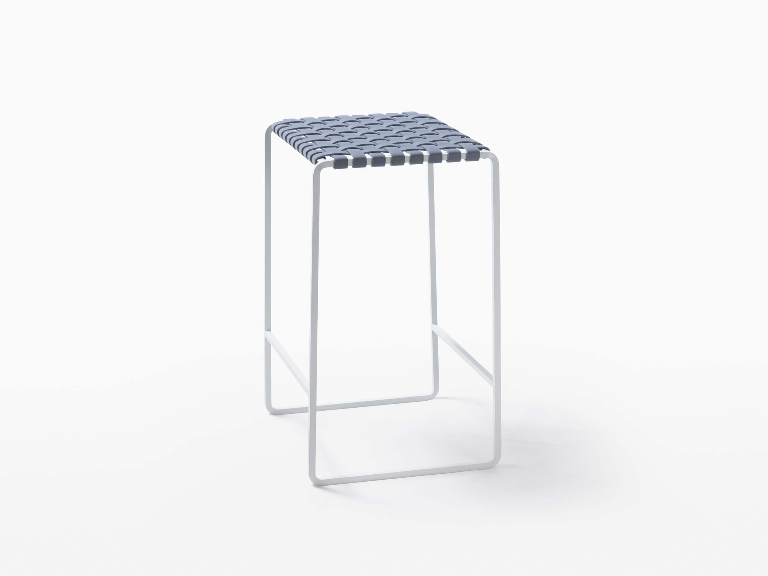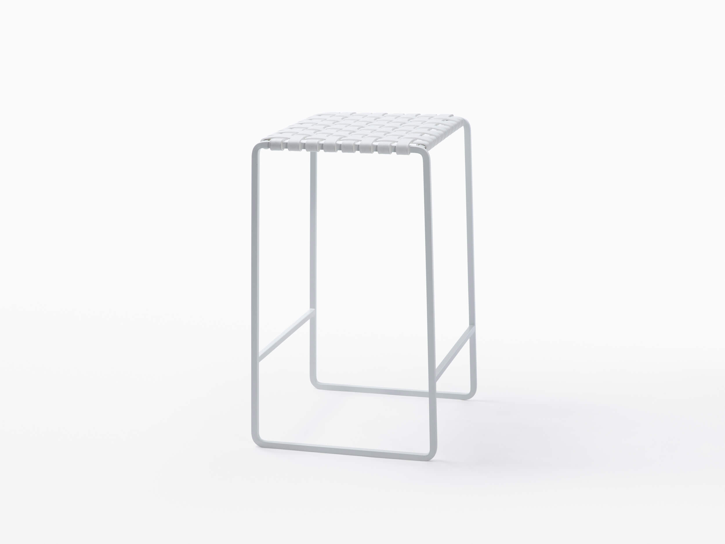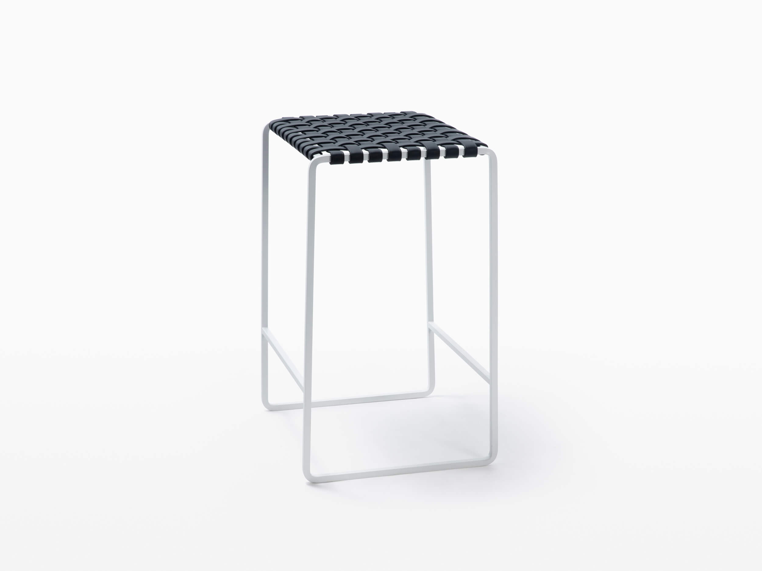 A versatile outdoor stool with a stainless steel or powder coated stainless steel frame and a UV resistant, waterproof, faux leather seat.
