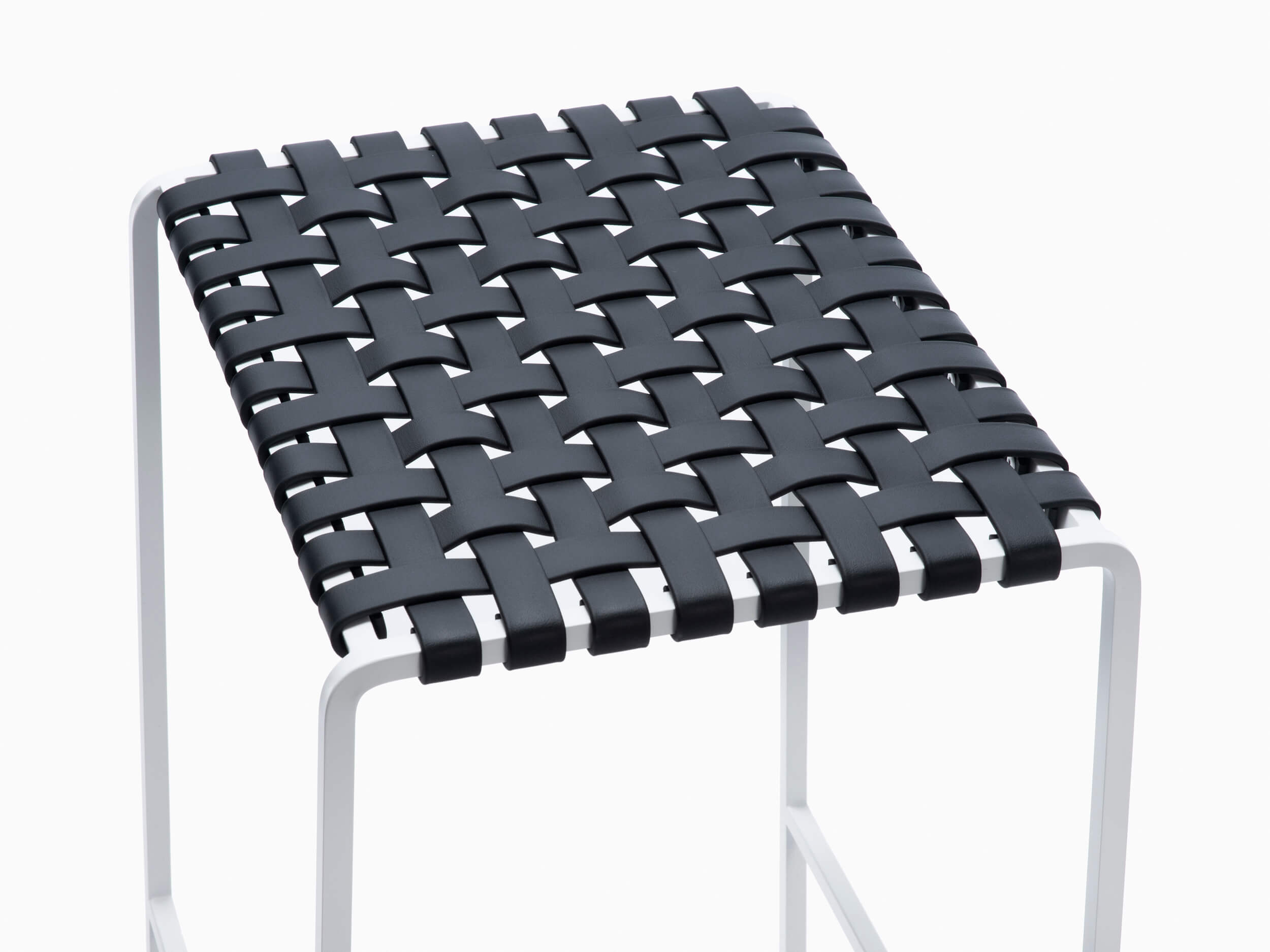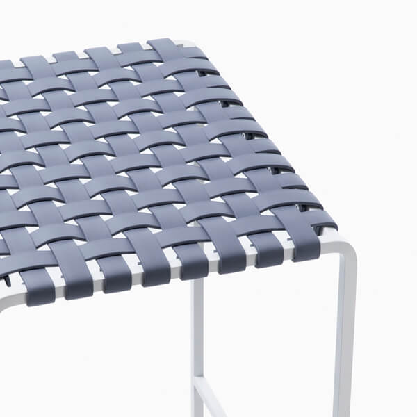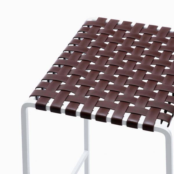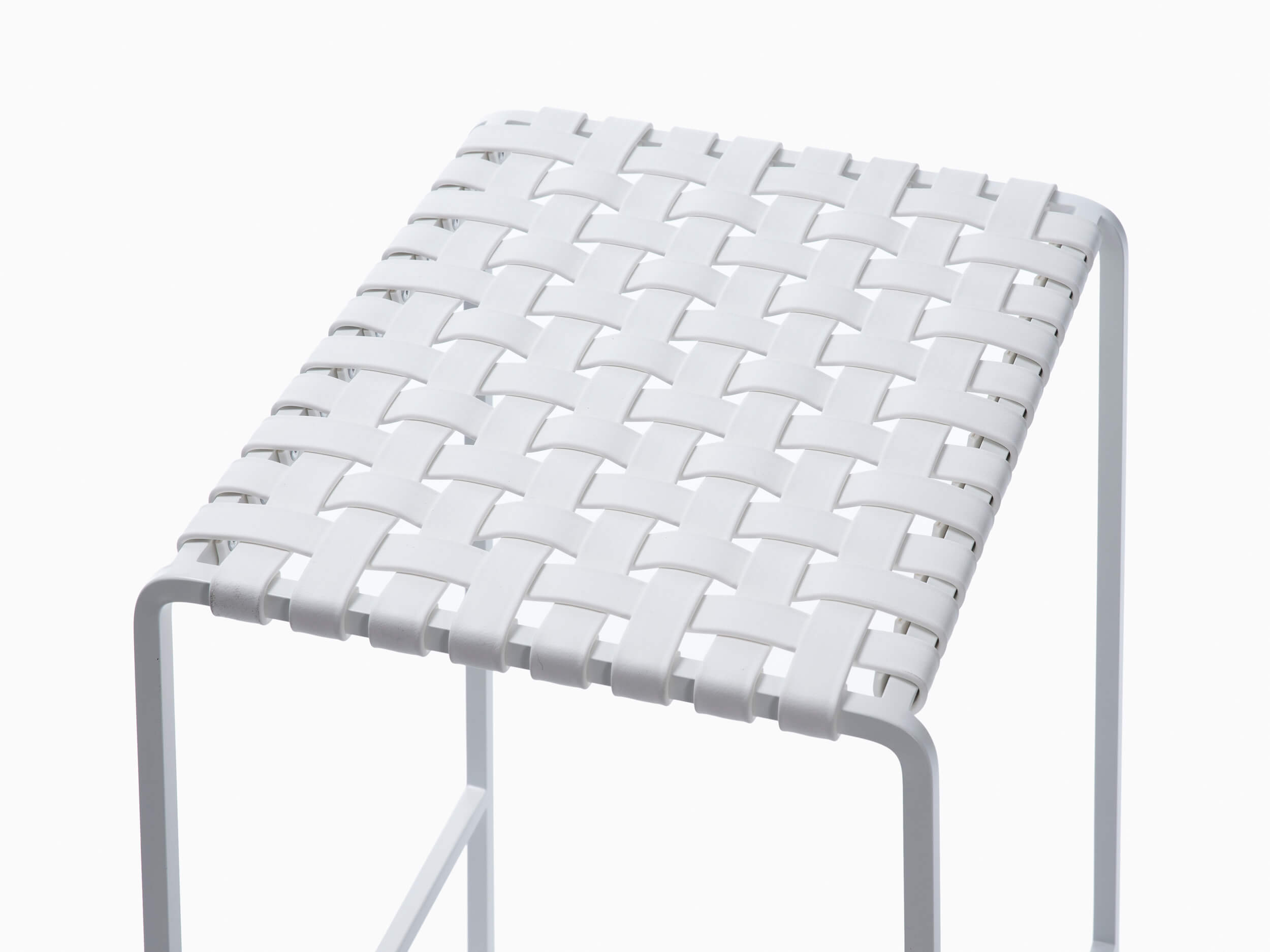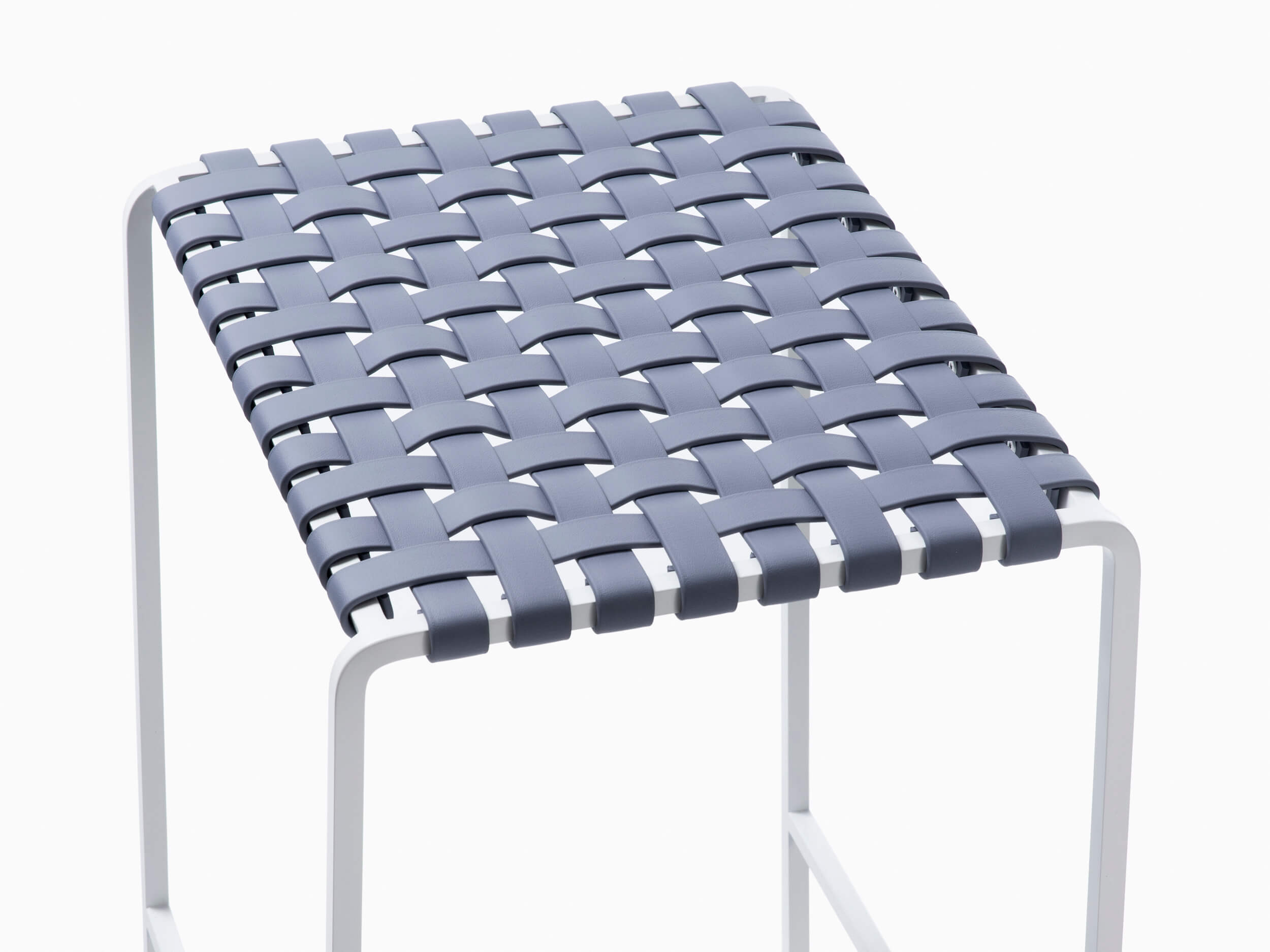 A versatile outdoor stool with a stainless steel or powder coated stainless steel frame and a UV resistant, waterproof, faux leather seat.