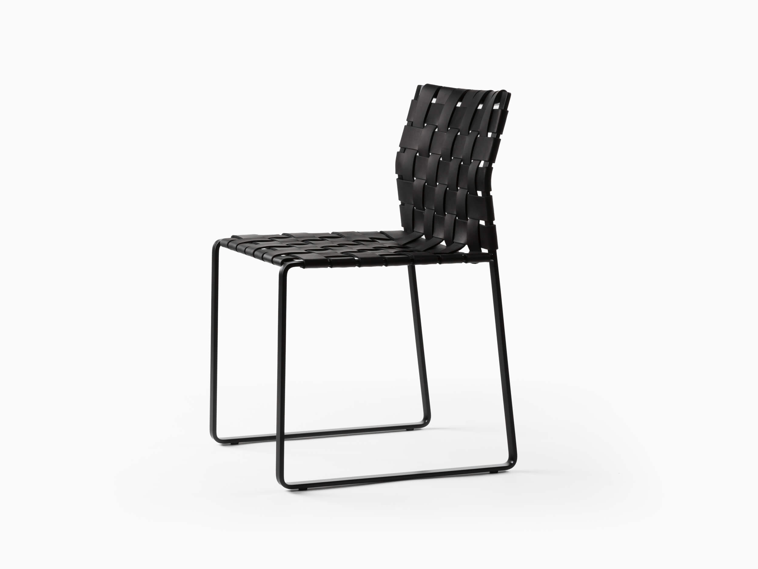 A seamless, solid steel or stainless steel frame supports a hand-woven English Bridle leather seat.