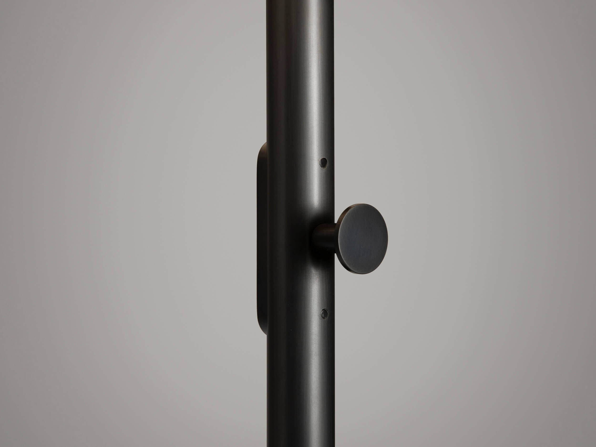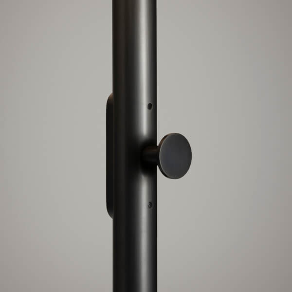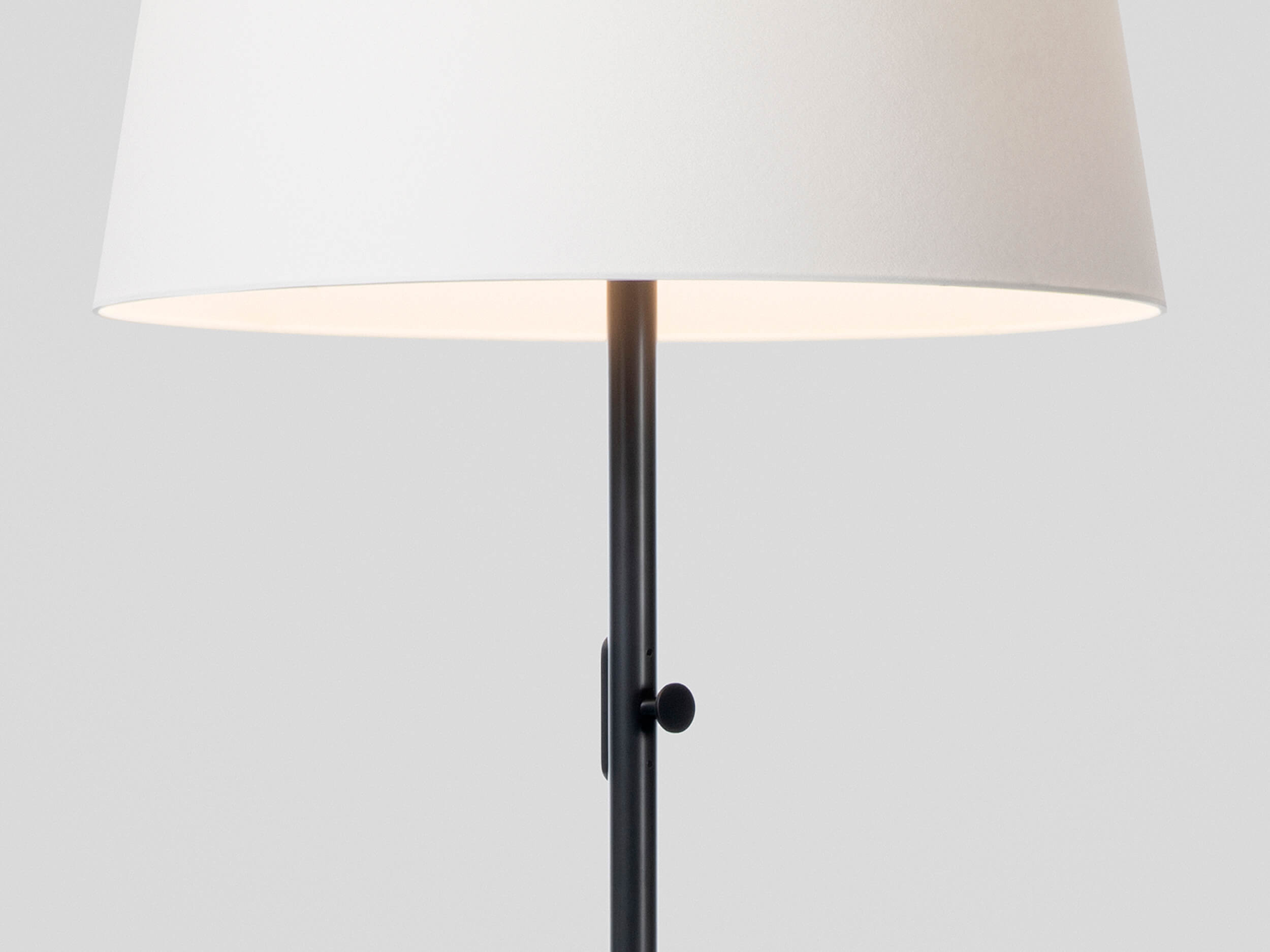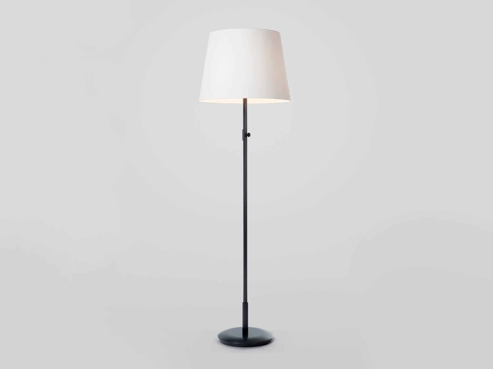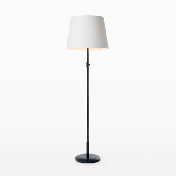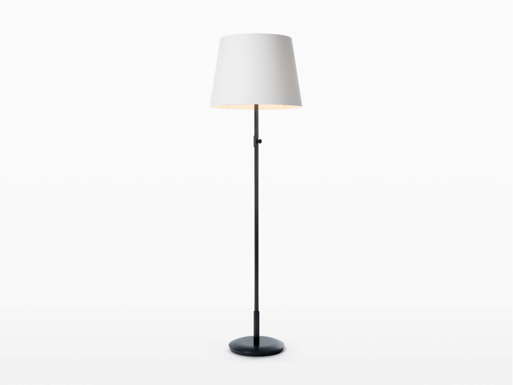 Floor Lamp with a black steel base, hand made switch and a French paper shade